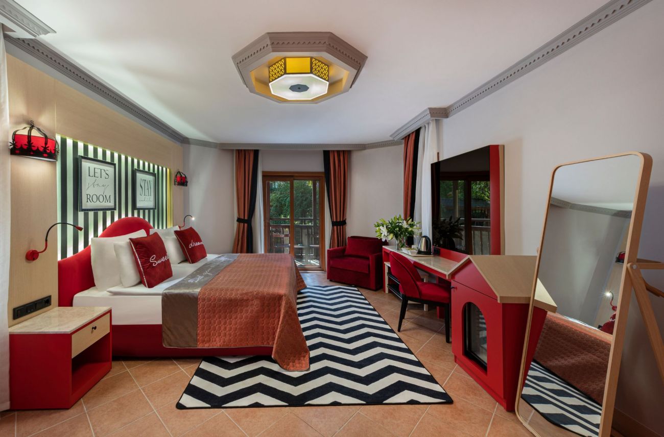 Хотелът разполага с общо 455 стаи, от които 278 разположени в 2 основни сгради Main building (4-6 етажа), 177 стаи в дву и триетажни бунгала Nature и 50 стаи Garden, от които 192 Main Building Standard Room (17-25 м2), 14 Suite Room (спалня, дневна, кухненски бокс - 50-53 м2), 22 Family Suite Room (2 отделни спални, дневна, кухненски бокс и трапезария - 64 м2); 50 Garden Room (без балкон - 17 м2); 177 Nature Room (25 м2).