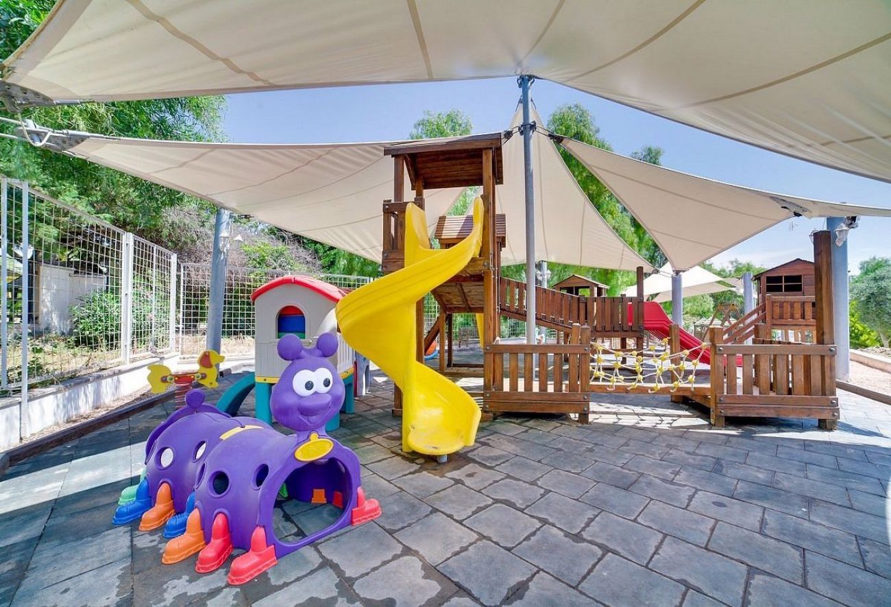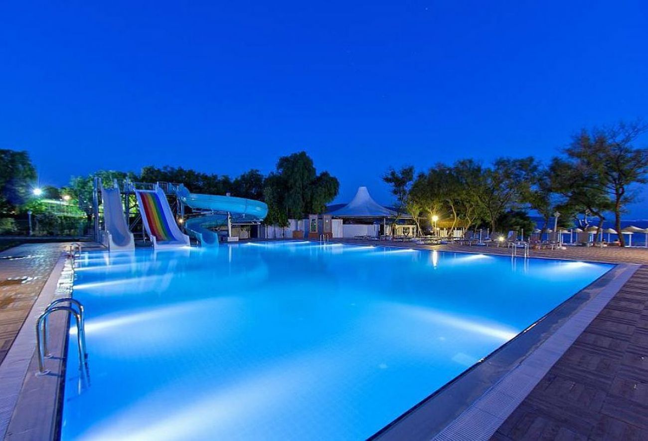 За децата: детски басейн, водни пързалки, детска площадка, мини клуб (4–12 г.)