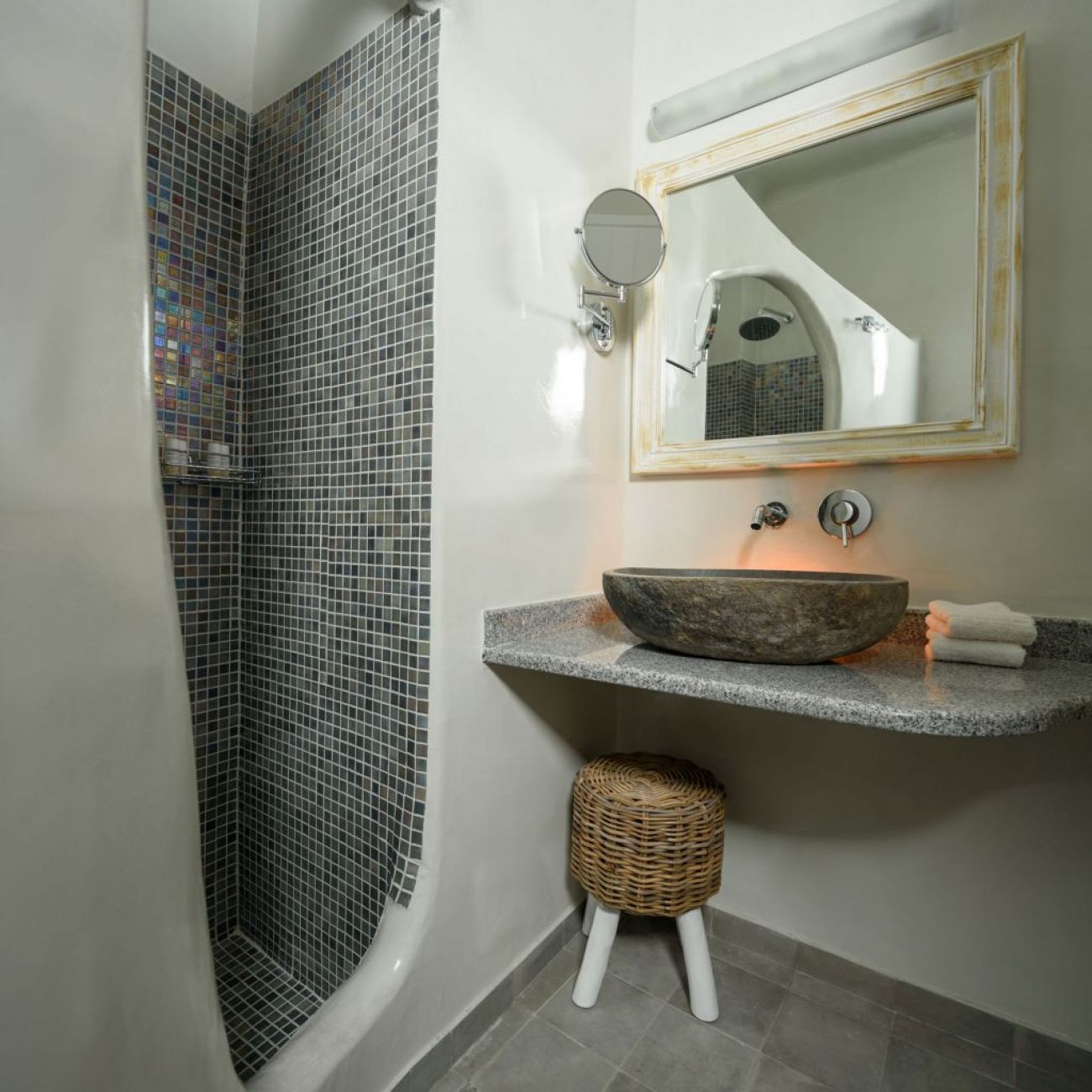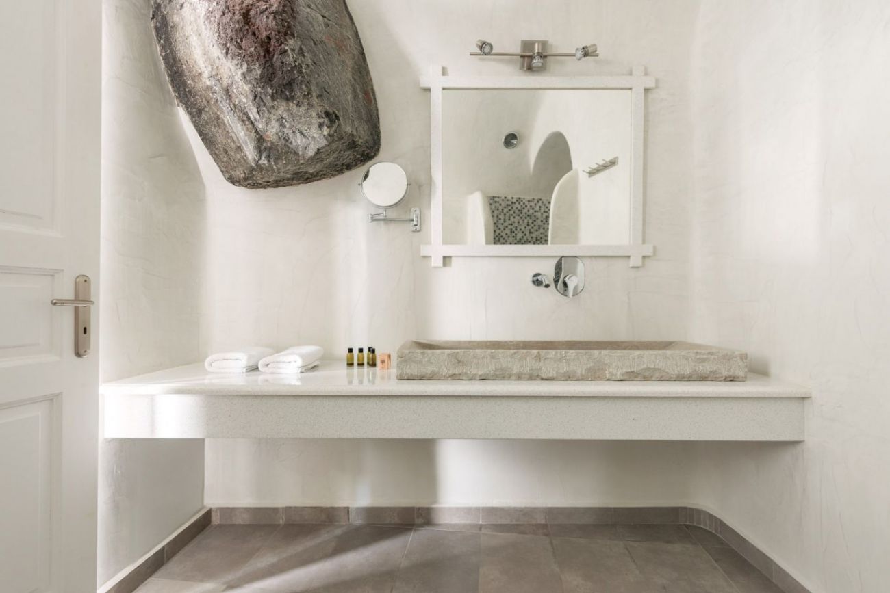 Хотелът предлага кафе-бар с тераса и гледка към калдерата на Санторини.