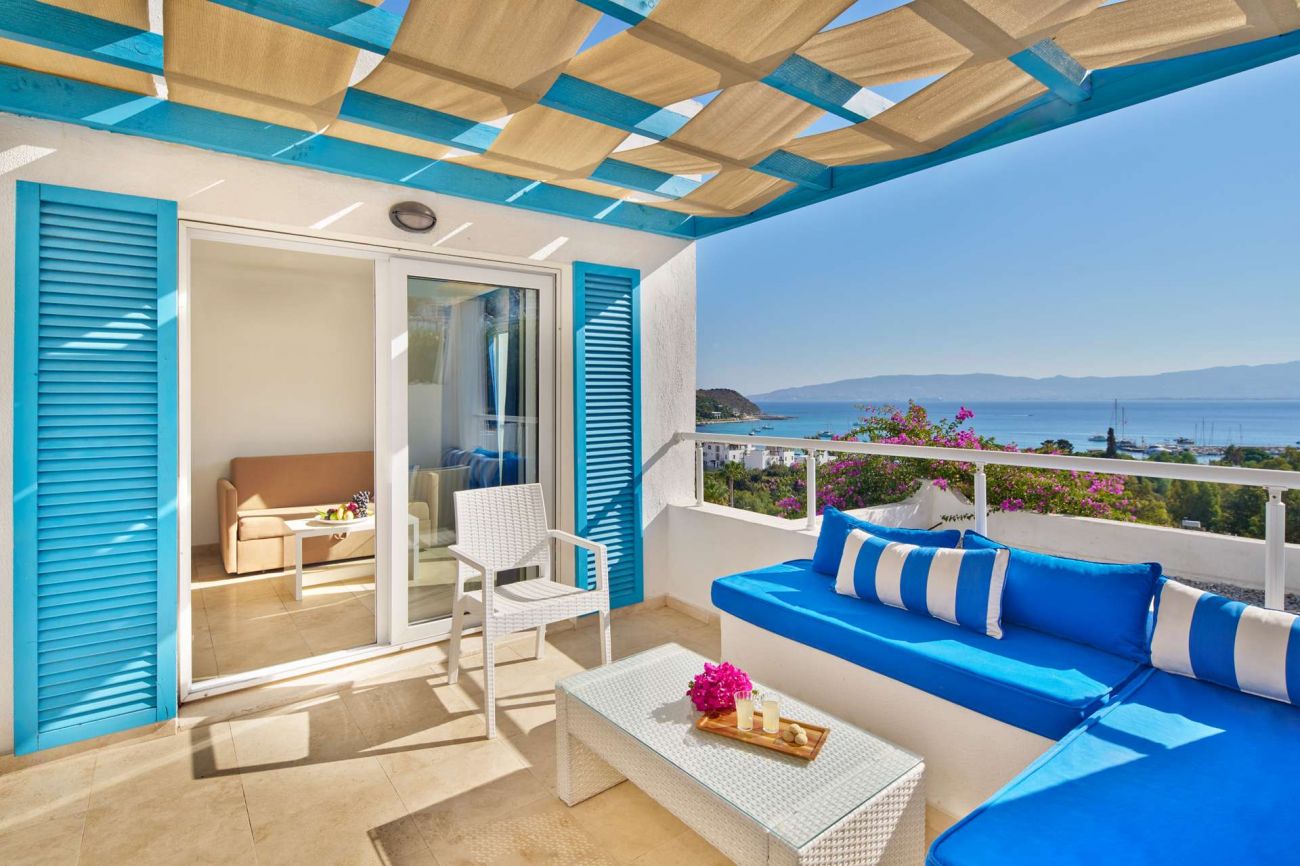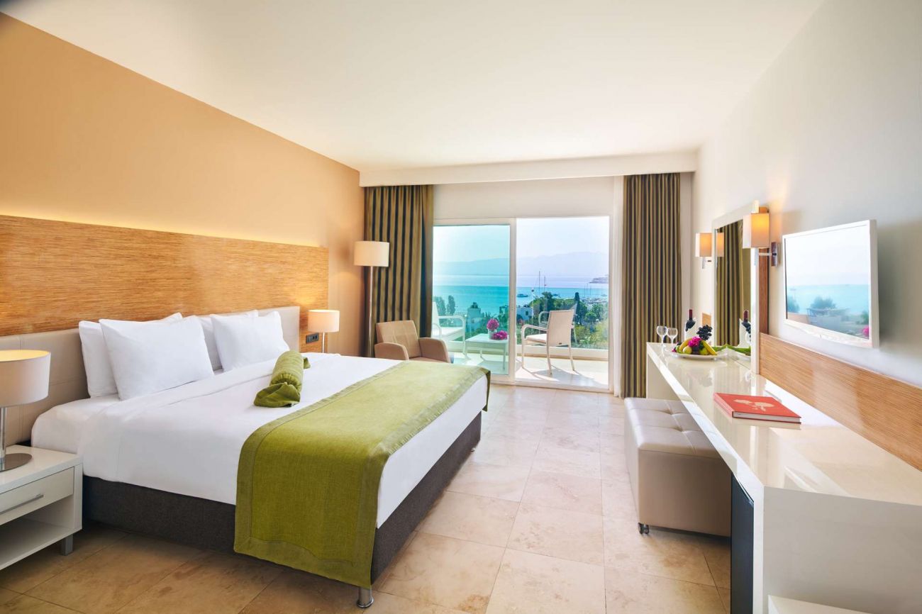 Стаи Land View Room (стандартни стаи в основната сграда с изглед суша - 30 м²), Sea View Room (стандартни стаи в основната сграда с изглед море - 30 м²), Club Room Land View (спалня, хол, баня, с изглед суша - 42 м²), Club Room Sea View (спалня, хол, баня, с изглед море - 42 м²).