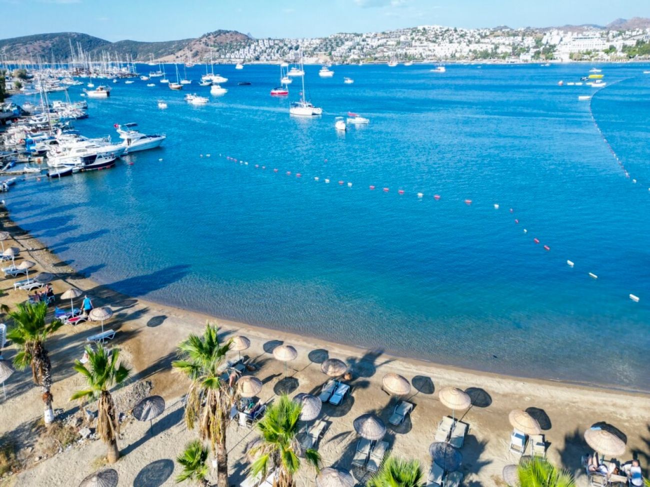 Собствен, пясъчно - чакълест. Чадъри, шезлонги и плажни кърпи на плажа и при басейна - безплатно.