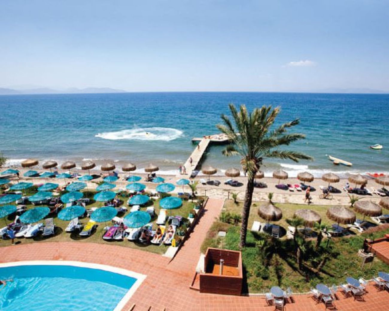 Плаж: собствен, пясъчно-чакълест. Чадъри и шезлонги на басейна и плажа - безплатно.